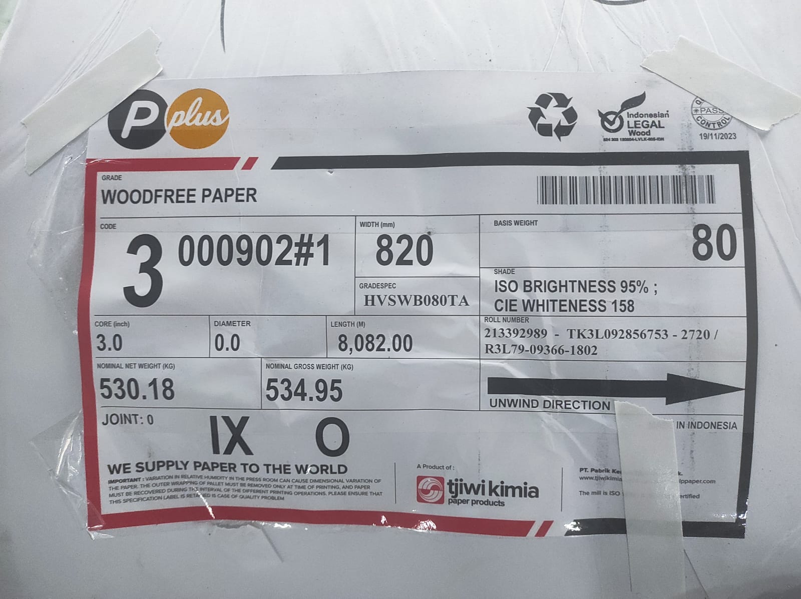 Quality Complaint Specification : HVS ROLL 80 82 PPLUS