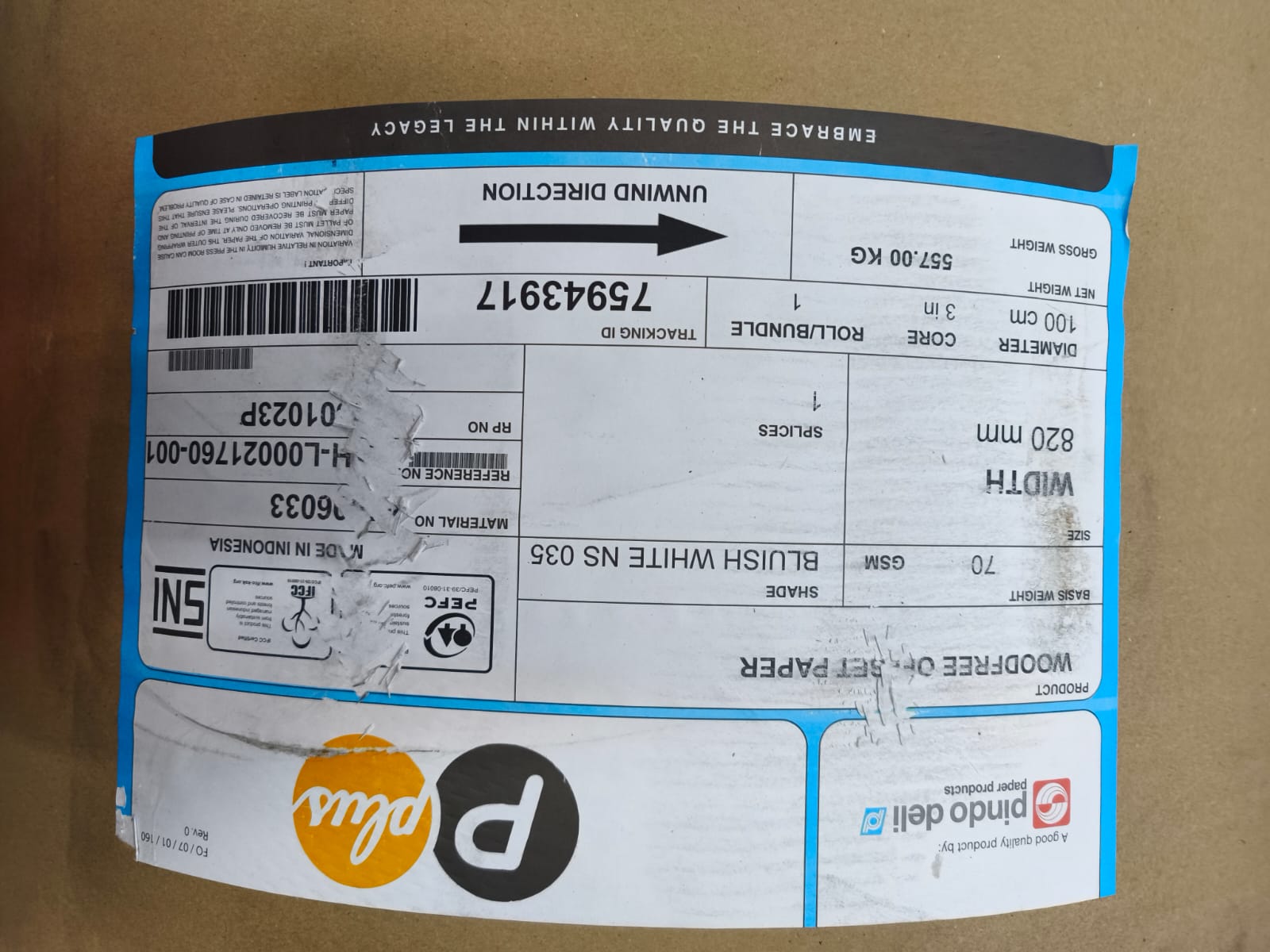 Quality Complaint Specification : HVS ROLL 70 82 PAPER PINDOPLUS