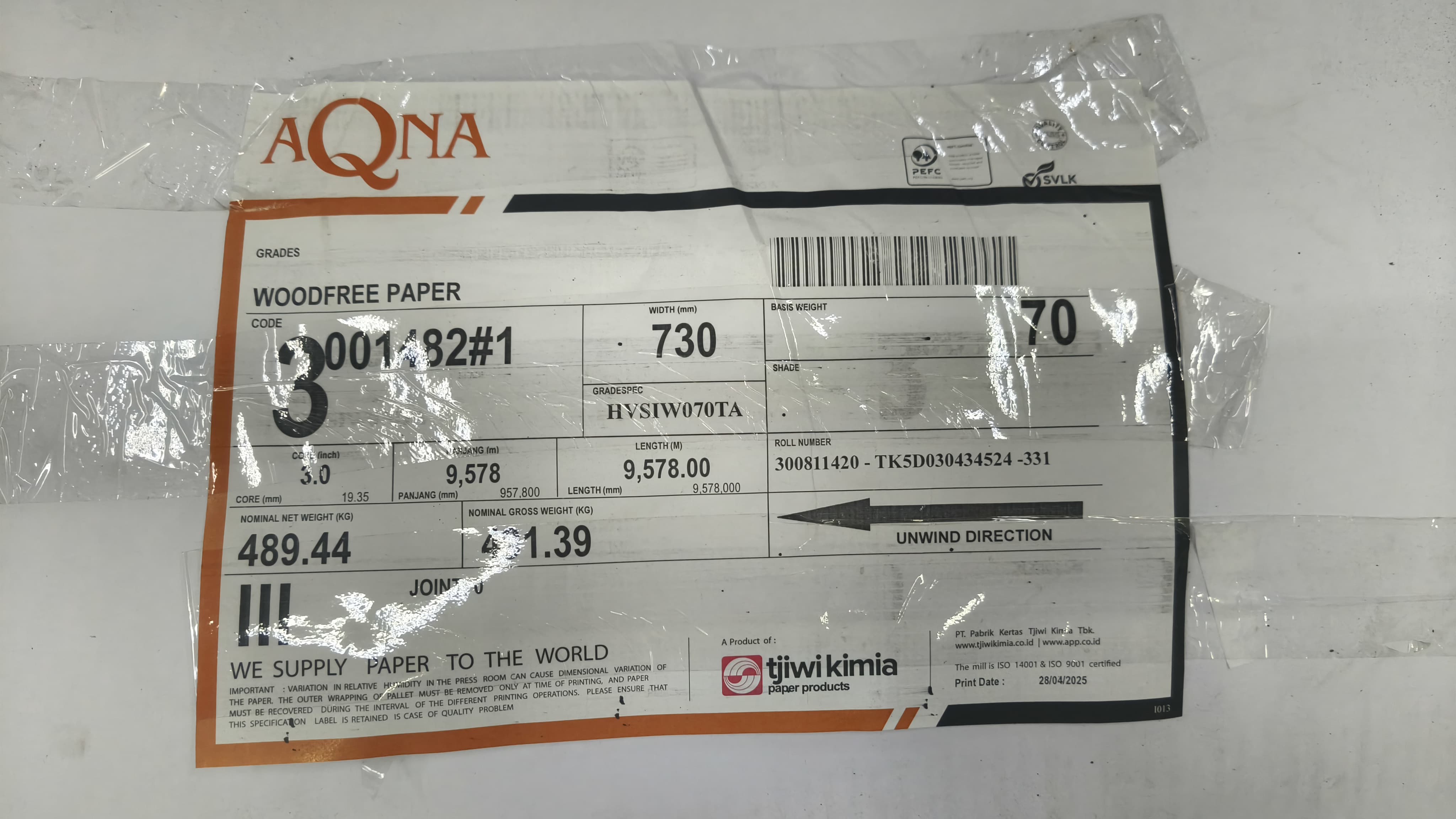 Quality Complaint Specification : HVS ROLL 70 73 AQNA