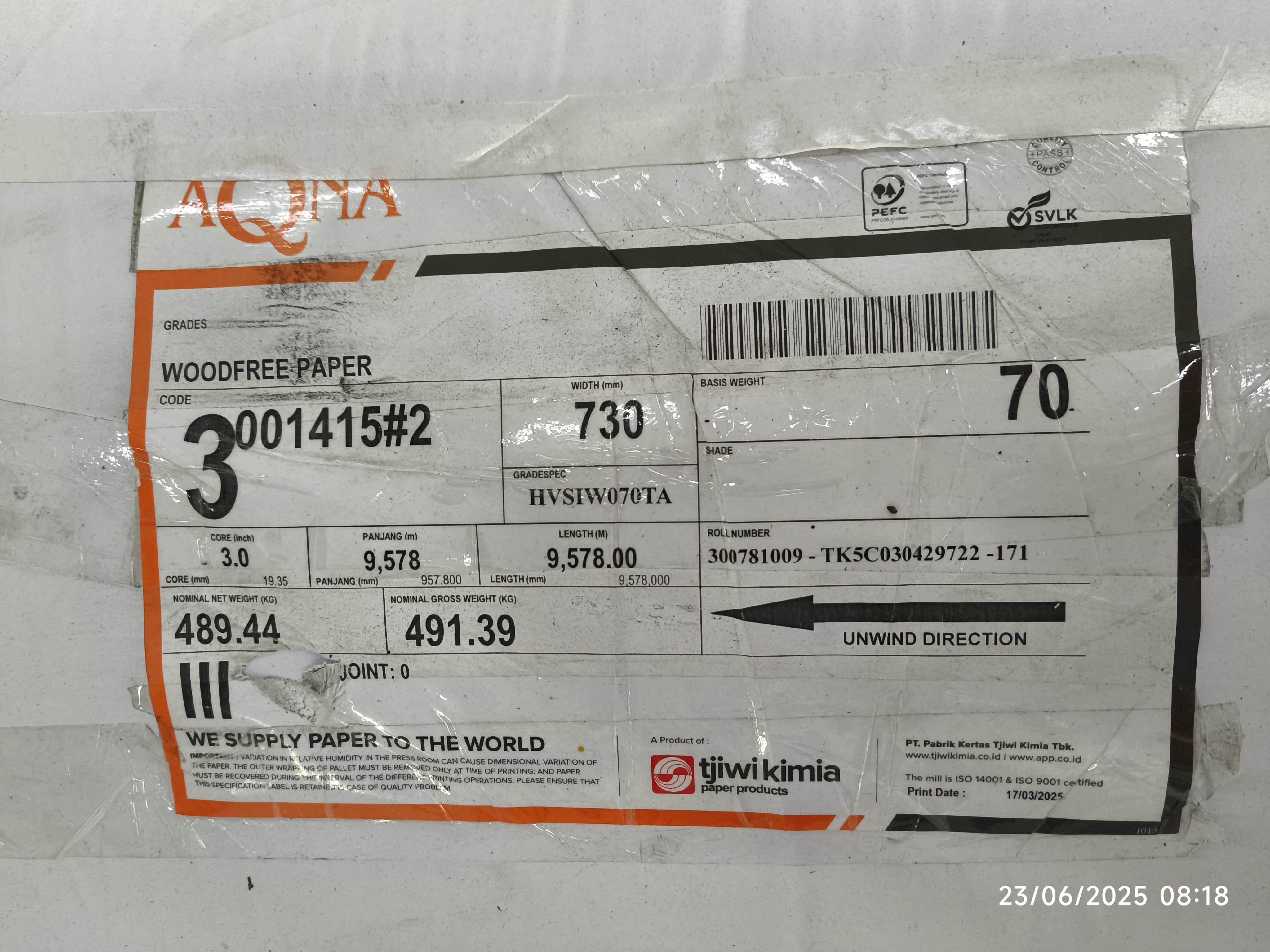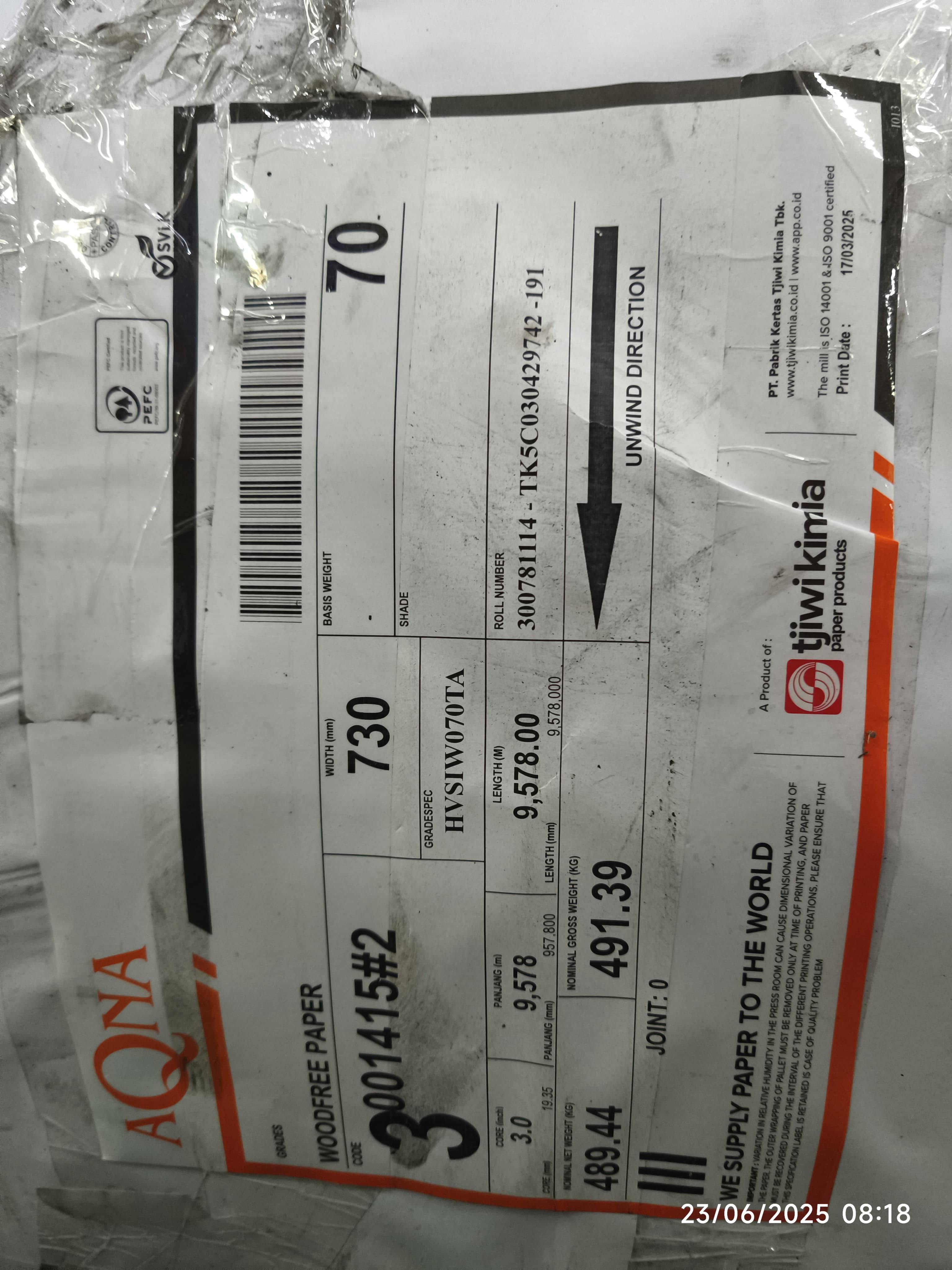 Quality Order Product : HVS ROLL