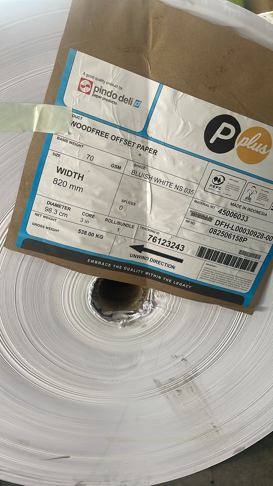 Quality Complaint Specification : HVS ROLL 70 82 PAPER PINDOPLUS