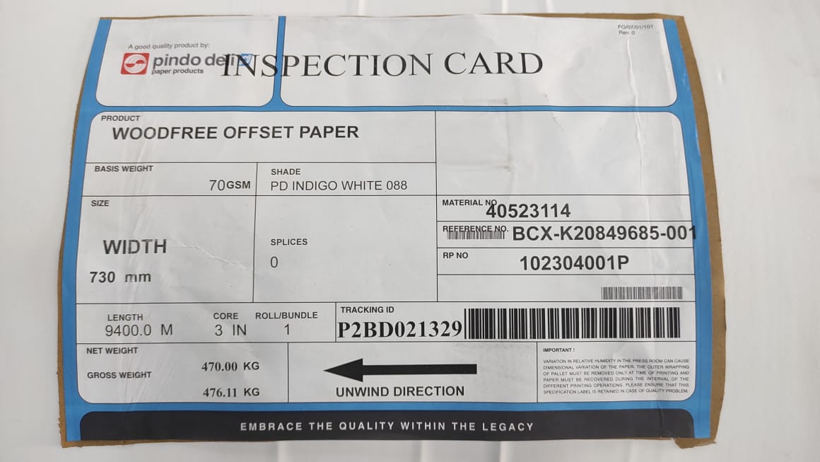 Quality Complaint Specification : HVS ROLL 70 73 INDIGO EX PINDO