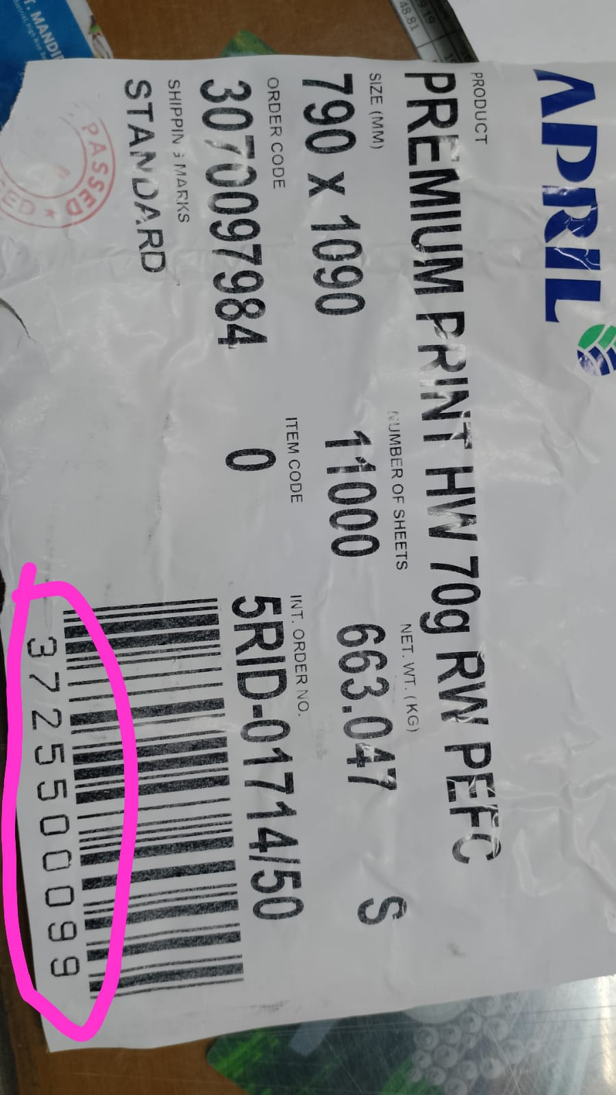 Quality Complaint Specification : HVS 70 GR, 79 X 109 CM RAPPREM