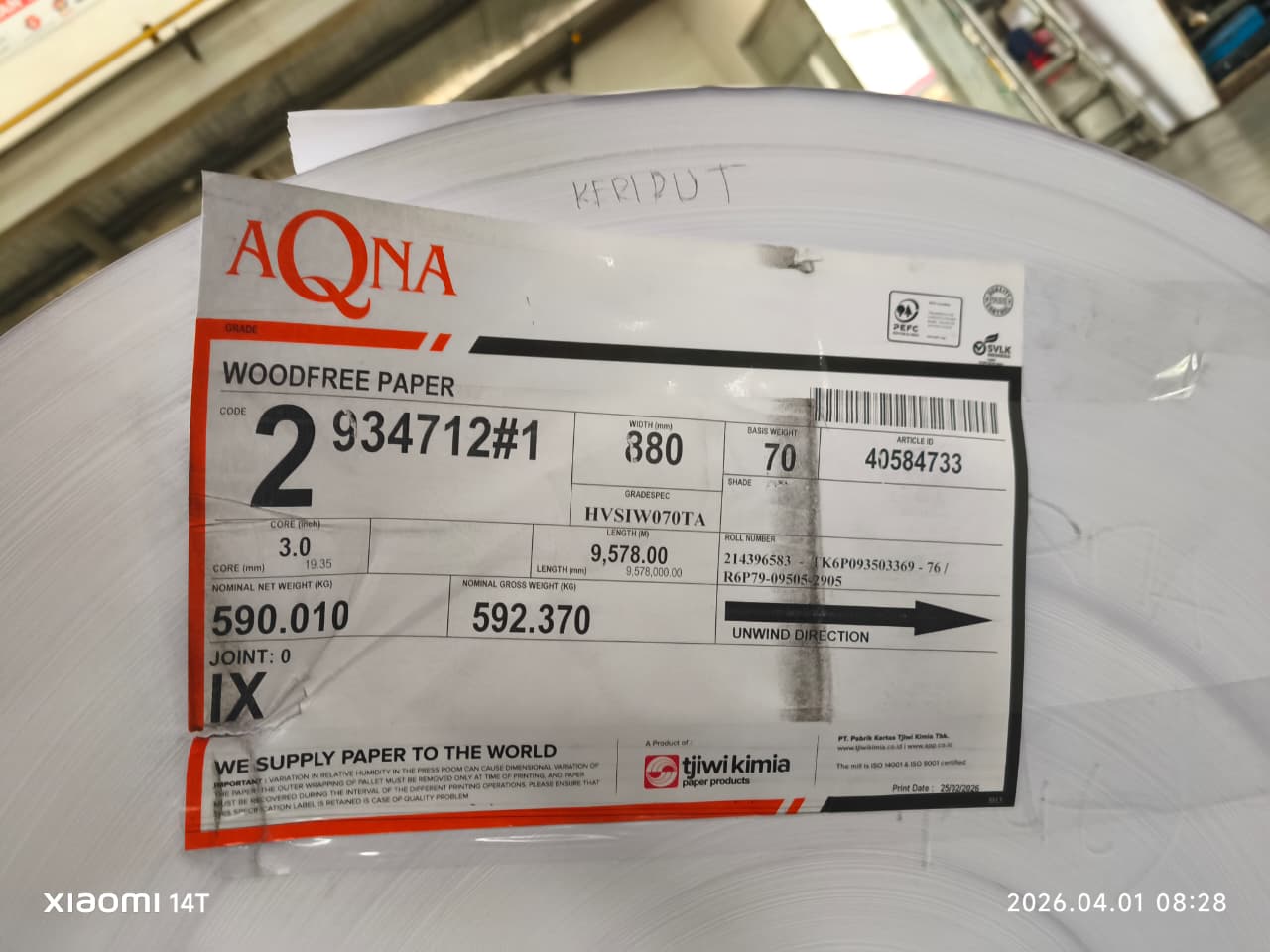 NAMA BARANG : HVS ROLL 70 88 AQNA