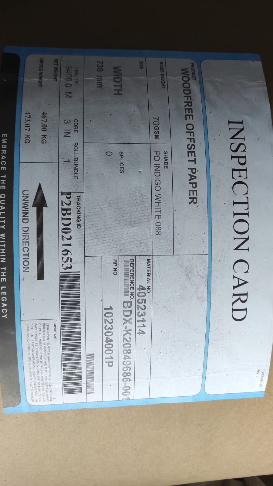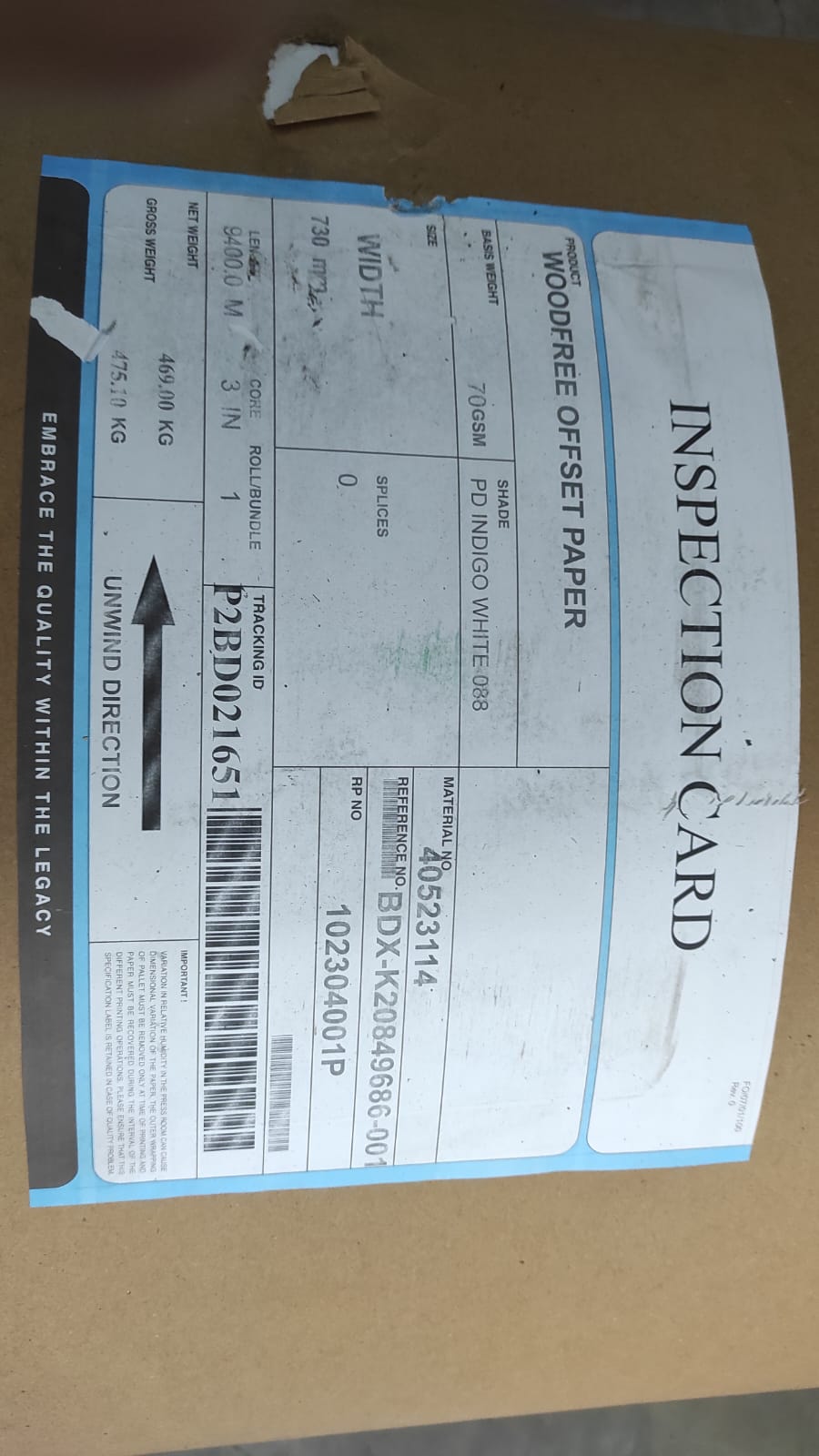 NAMA BARANG : HVS ROLL 70 73 INDIGO EX PINDO